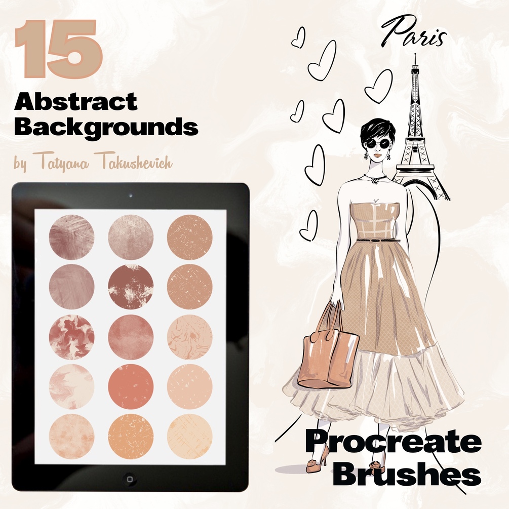 You'll get set of 15 wonderful Procreate Brushes: background textures. You can use them as backgrounds for your illustrations to make them pretty amaizing.